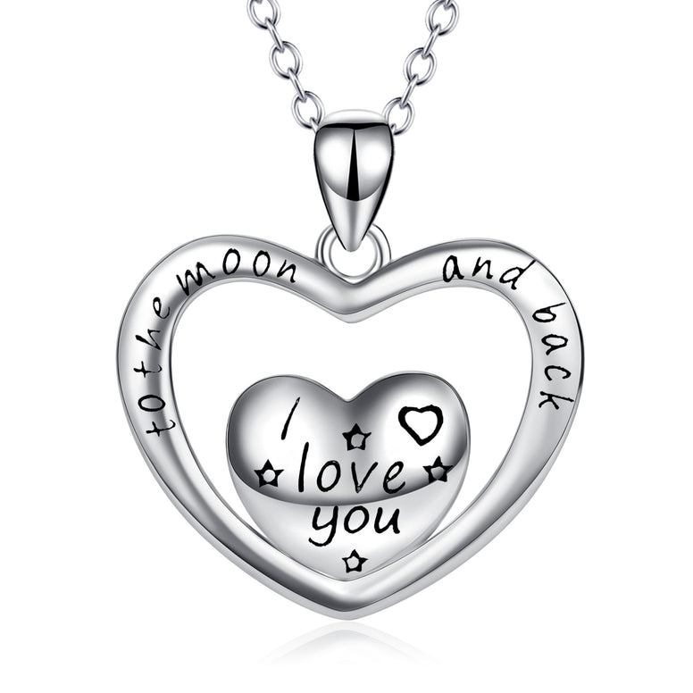 Necklace in real silver with engraving text "I love you to the moon and back"